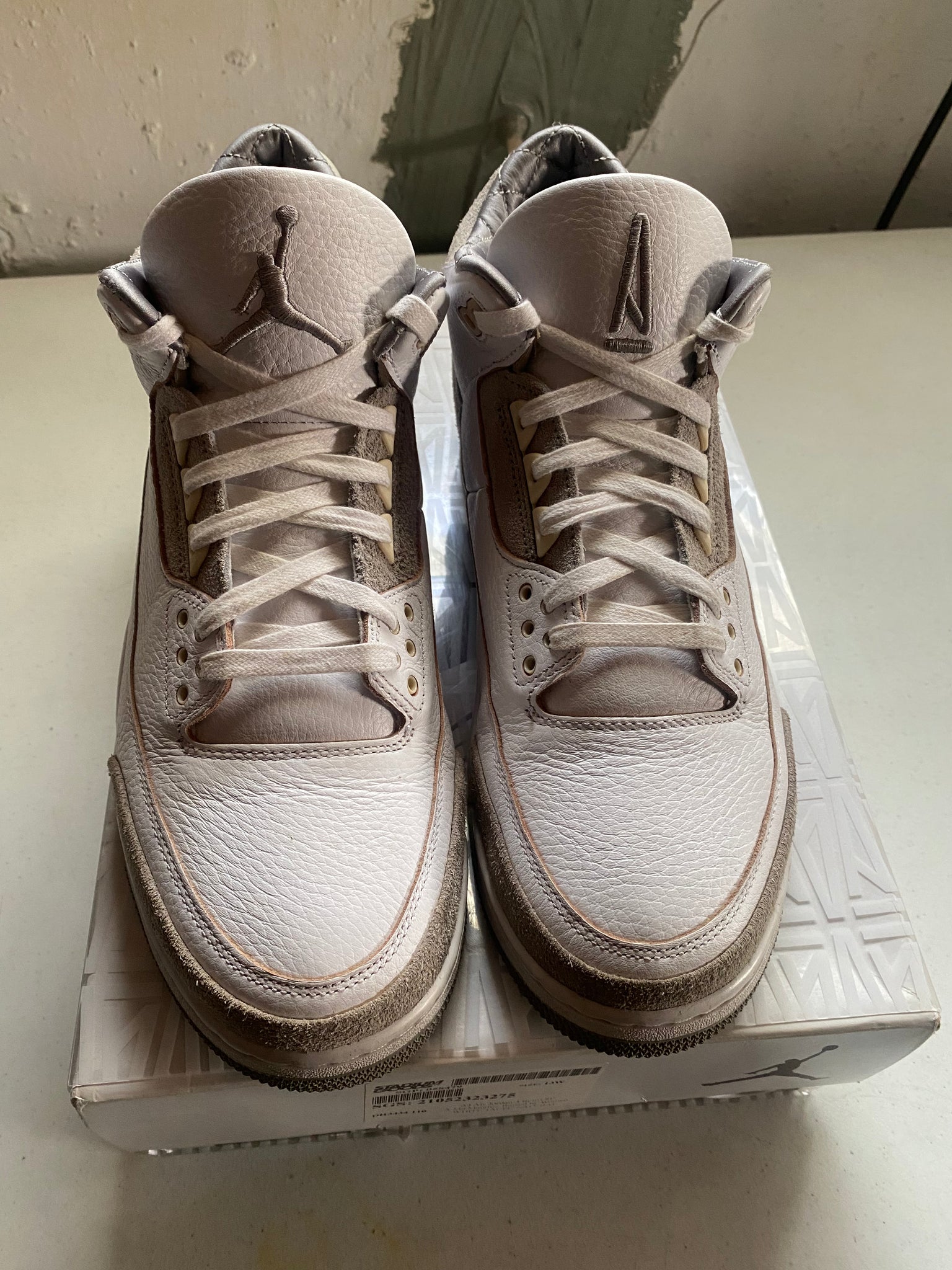 Elevate your street style with the A Ma Maniére x Jordan 3 Retro SP "Raised By Women" basketball shoes. Crafted with luxury in mind, these limited edition Jordans in a rare size come with their original box and accessories. Perfect for the sneaker collector or fashion-forward individual looking to make a statement.